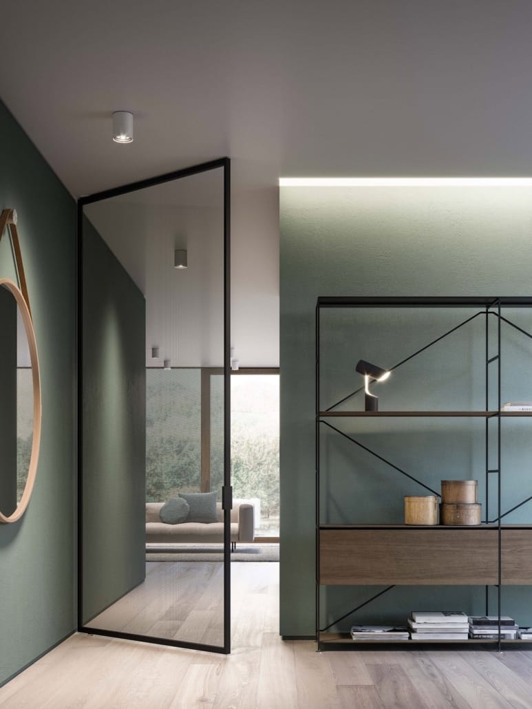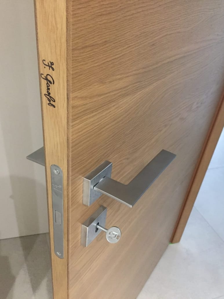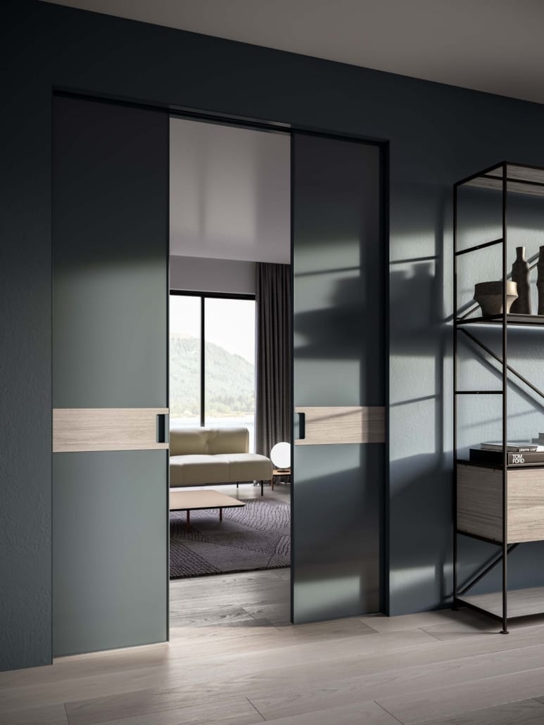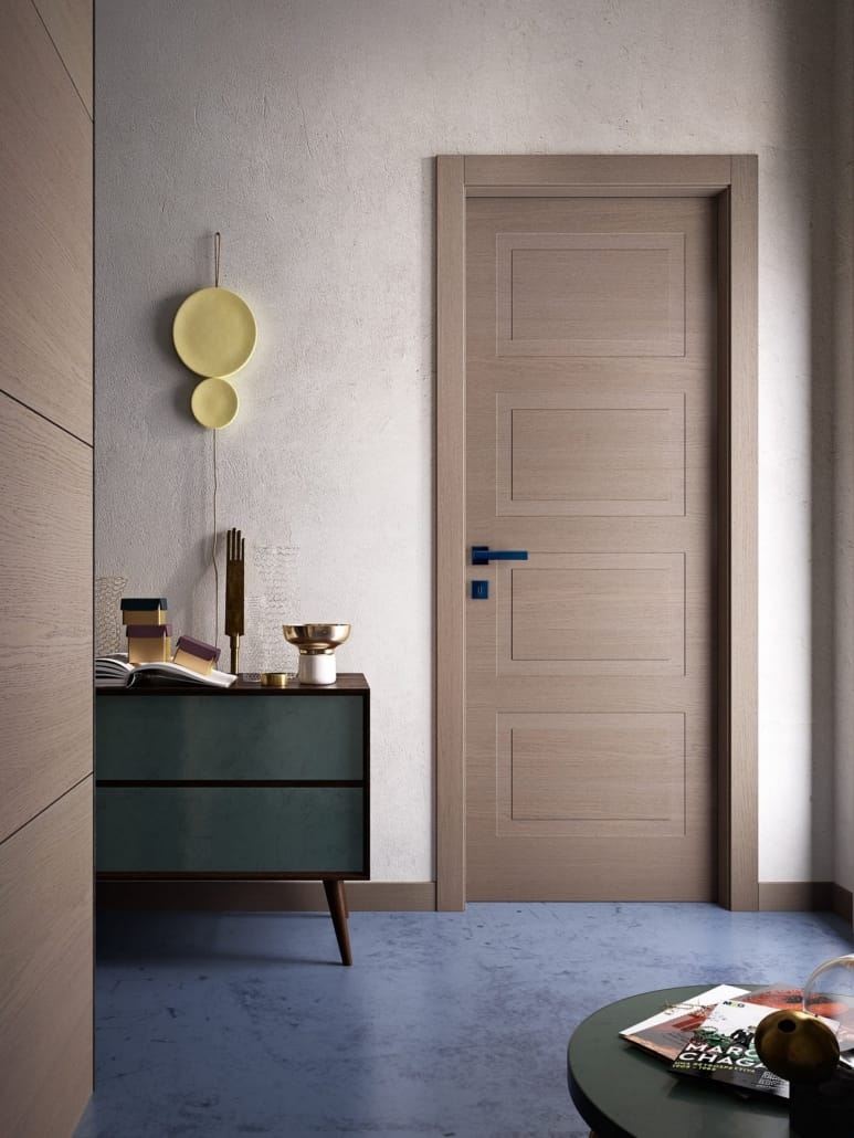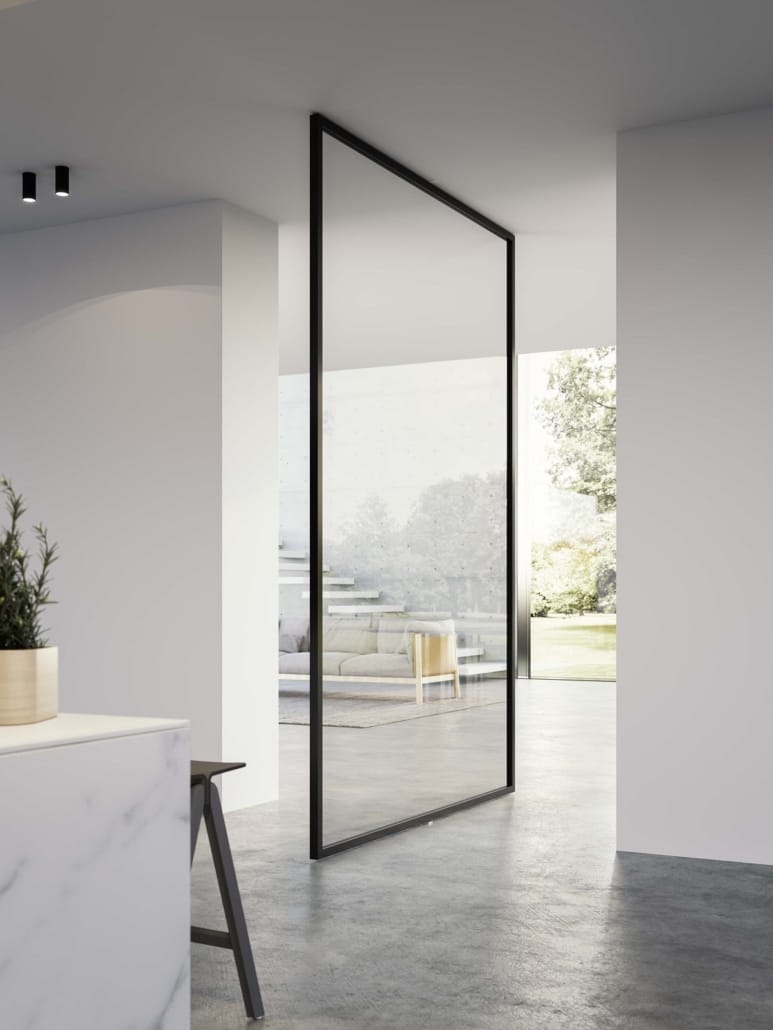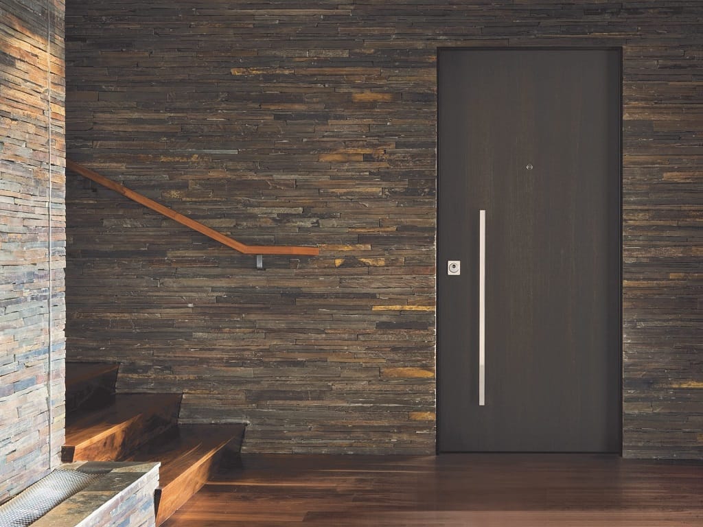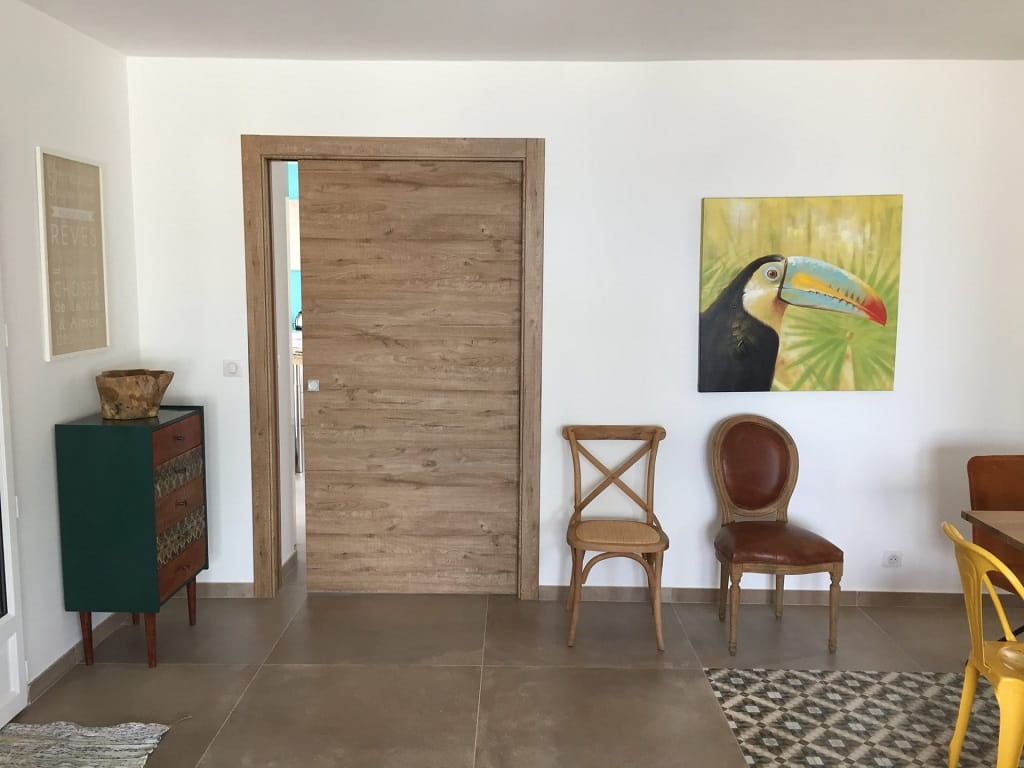 La porte à affleurement offre un résultat esthétique minimaliste et épuré de tous les habillages que l’on retrouve sur le bloc-porte de type fin de chantier.